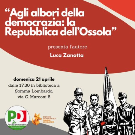 Biblion Edizioni invita alla presentazione del libro Agli albori della democrazia: la Repubblica dell’Ossola, di Mirco Carrattieri e Luca Zanotta, che si svolgerà domenica 21 aprile dalle ore 17:30 presso la Biblioteca di Somma Lombardo (VA), organizzata dal locale circolo PD. Qui sotto la locandina dell’evento.