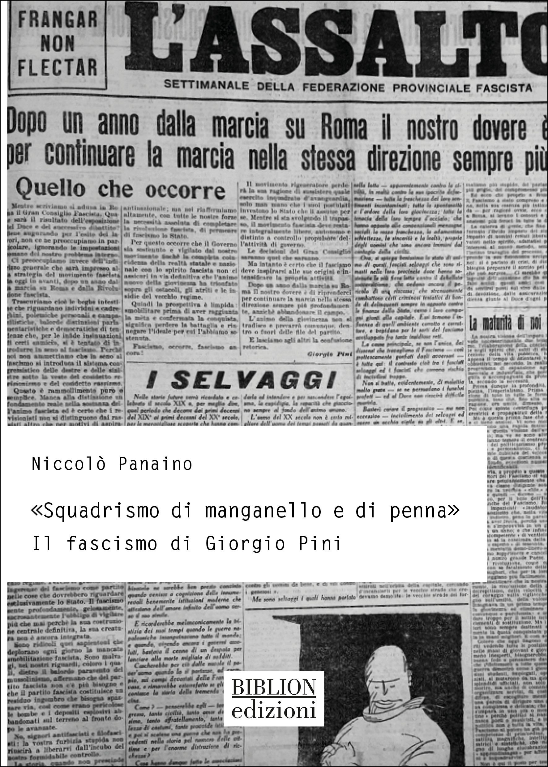Il profilo del giornalista fascista Giorgio Pini (1899-1987) è rimasto per molti decenni nel cono d’ombra della riflessione storiografica sul periodo fascista, una condizione di marginalità derivante principalmente da tendenze interpretative che negavano al fenomeno una dimensione culturale e un’ideologia di riferimento. Malgrado le recenti e importanti acquisizioni in materia di cultura fascista, la traiettoria biografica di Pini è emersa soltanto superficialmente in un dibattito storiografico ormai estremamente ampio e articolato. Oltre a colmare alcune lacune sedimentatesi nel corso degli anni, lo studio relativo alla vita di Pini rappresenta un osservatorio privilegiato per analizzare lo sviluppo – tutt’altro che lineare – di una corrente culturale che considerava il periodo dello squadrismo come il serbatoio a cui attingere per indirizzare il futuro del fascismo, un orientamento sopravvissuto alla fine dell’esperienza fascista e che lasciò tracce nell’Italia repubblicana. Il vissuto del giornalista fascista consente inoltre di impostare una riflessione sia sulle radici della militanza fascista e sulle eredità lasciate dal Ventennio, sia sul fascismo inteso come rivoluzione antropologica, come progetto totalitario che in questo studio viene indagato da un angolo visuale differente, non più guardando alle politiche del regime, ma adottando la prospettiva di una figura attiva nell’agone politico e culturale della prima metà del XX secolo.